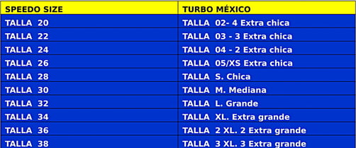 TABLA DE TALLAS BASADA EN NUESTRA EXPERIENCIA. TOMANDO COMO REFERENCIA LA MARCA SPEEDO.